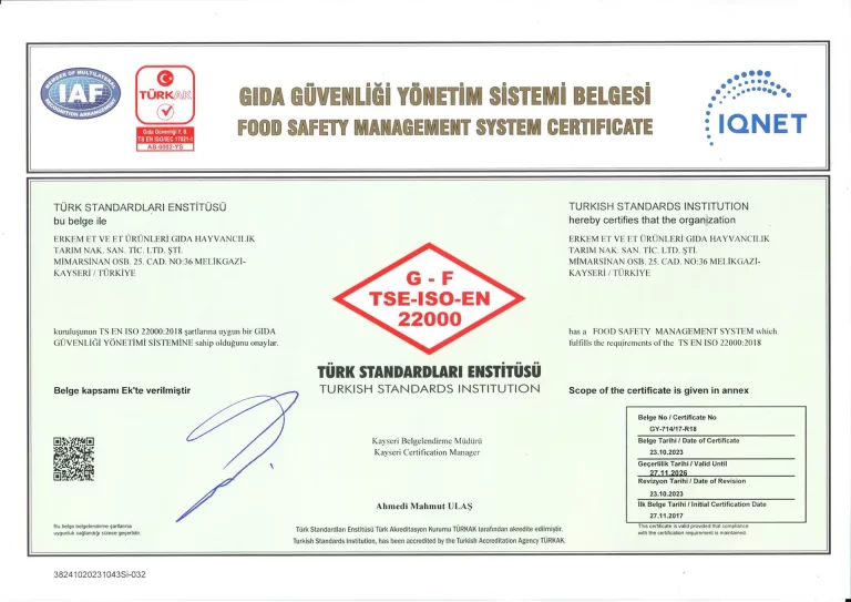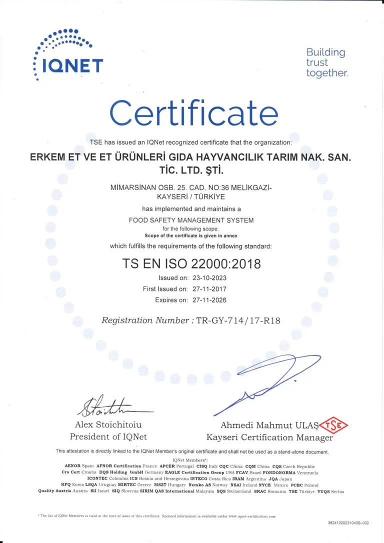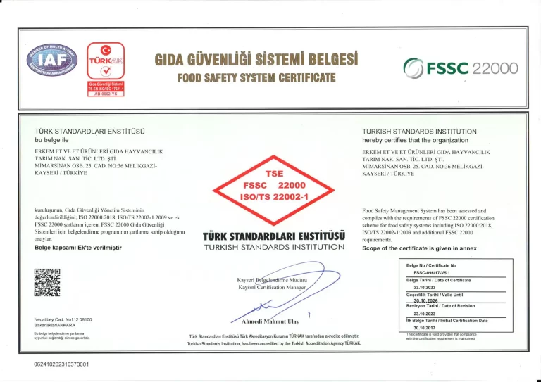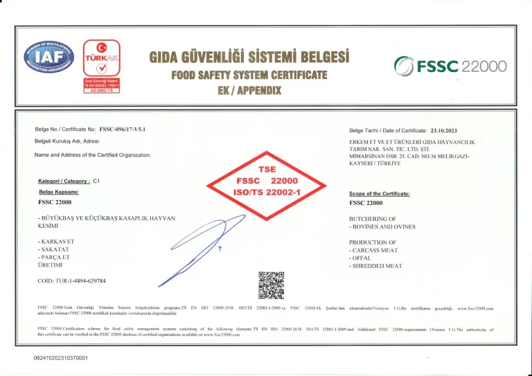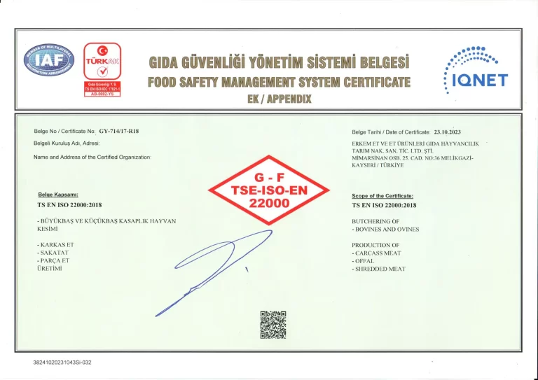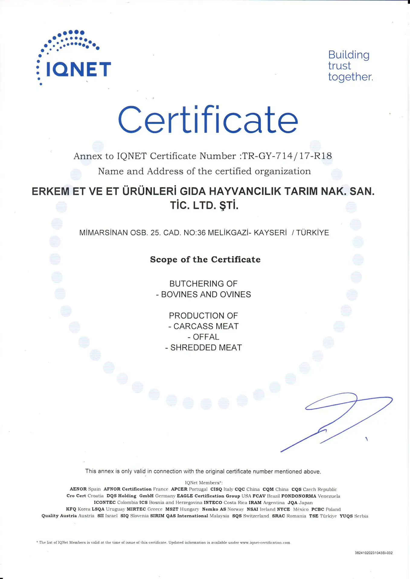 Kesim öncesi tüm hayvanlar, yetkili veteriner hekimlerimiz tarafından kontrol edilerek sağlıklı olduklarından emin oluyoruz. Uluslararası hijyen standartlarına uygun olarak tasarlanmış kesim ve işleme hattımızı, her aşamada titizlikle kontrol ediyoruz.