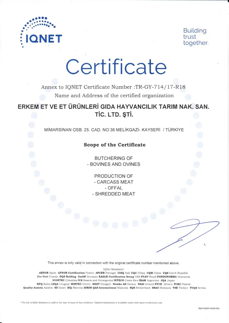 Er & Kem Et Entegre, Kayseri'de kurulan ve helal kesim prensiplerine bağlı olarak faaliyet gösteren bir kesim tesisidir. 20 yılı aşkın tecrübemizle, hijyen ve kaliteyi ön planda tutarak, sofralarınıza taze ve güvenilir et ürünlerinin sunulması için çalışıyoruz.